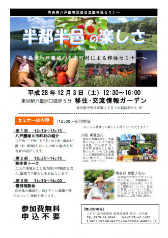 2016/12/3八戸圏域移住セミナー「半都半邑の楽しさ」 東京駅前で開催!